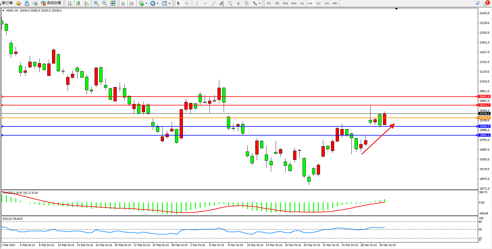 恒指HK50 4小时图