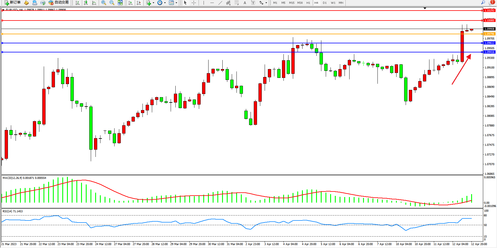 EURUSD:高位拉升