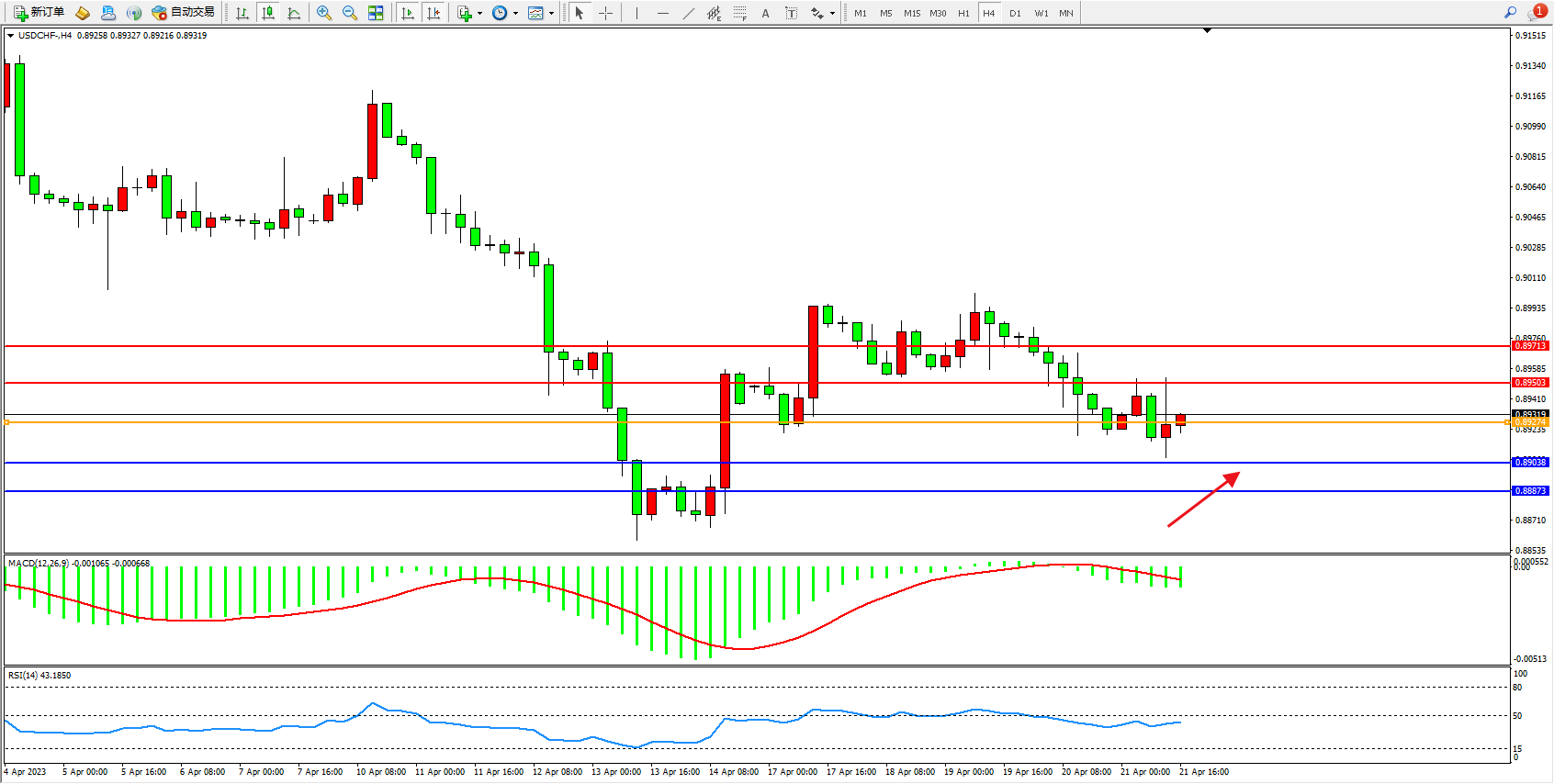 备选策略:0.89274下方看跌,目标0.89038 0.88873