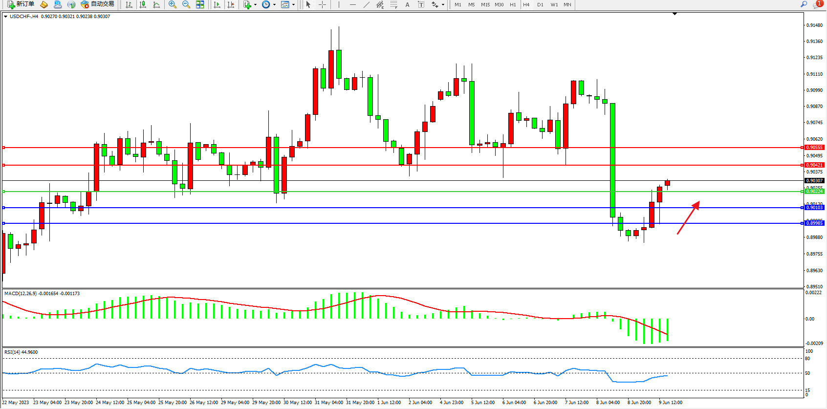 美元瑞郎USDCHF——4小时K线图显示: