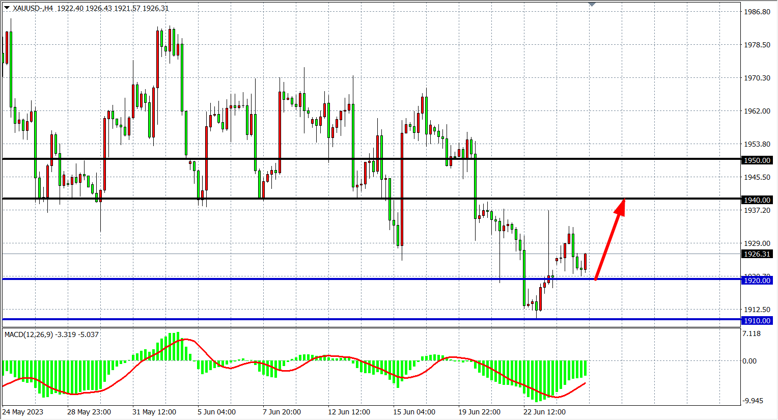 交易策略:1910上方看涨,目标 1940 1950