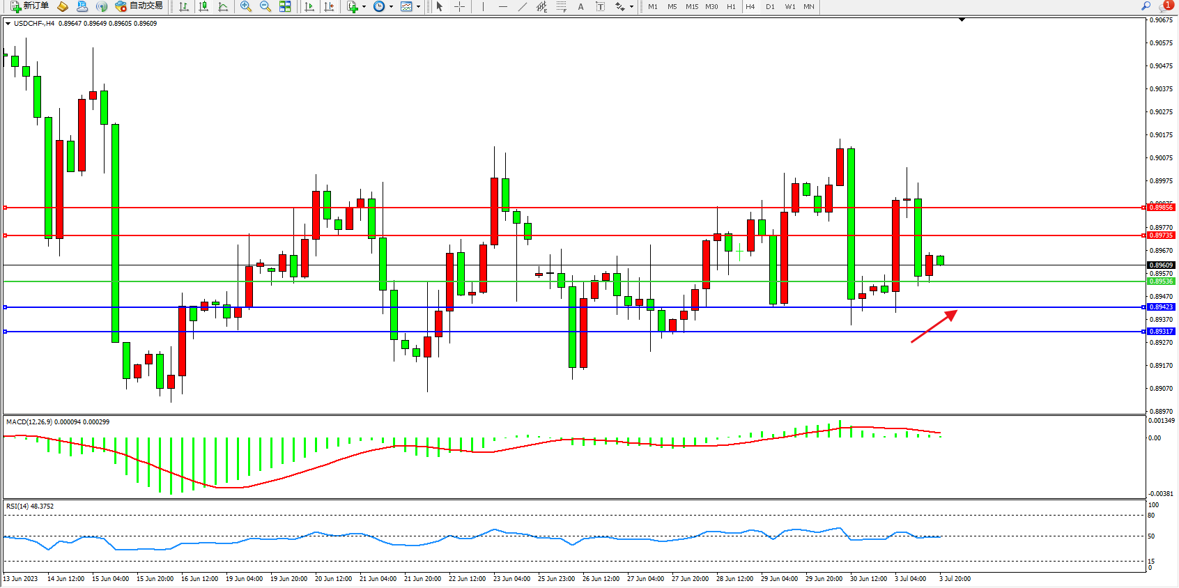 交易策略:0.89536上方看涨,目标0.89423  0.89317