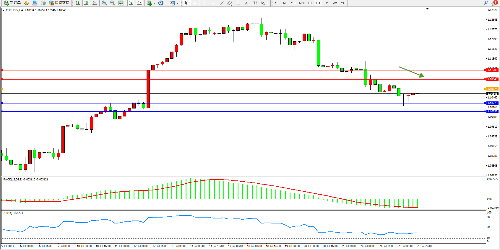 交易策略:1.10674下方看跌,目标1.10273  1.10039