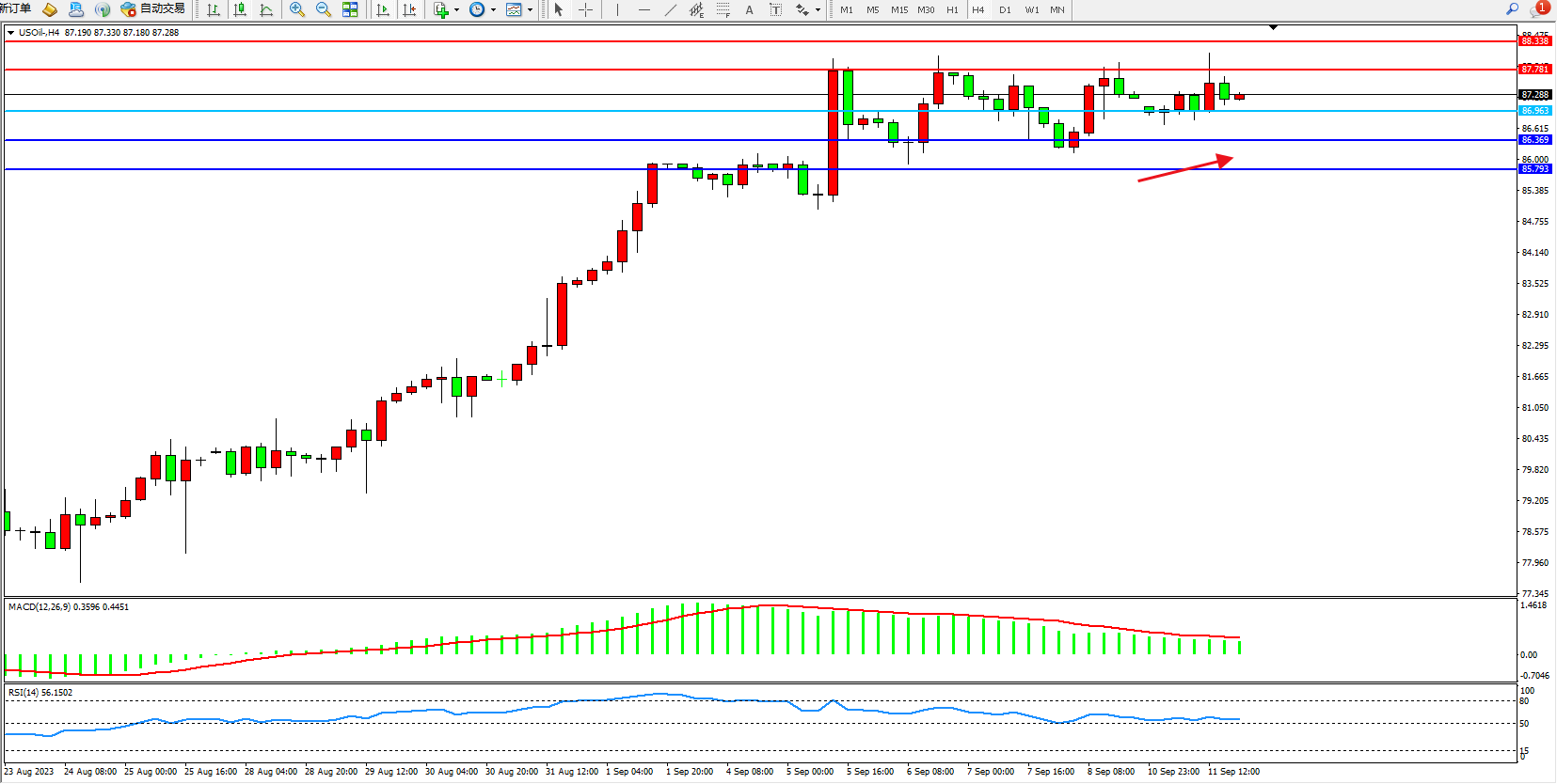 原油维持87.288附近震荡,国际能源署和欧佩克原油市场报告中,任何需求强劲的迹象都可能推高油价。自6月中旬以来,美国基准油价已经飙升近20美元/桶,主要因沙特阿拉伯和俄罗斯的减产,目前减产协议现已延长至年底。