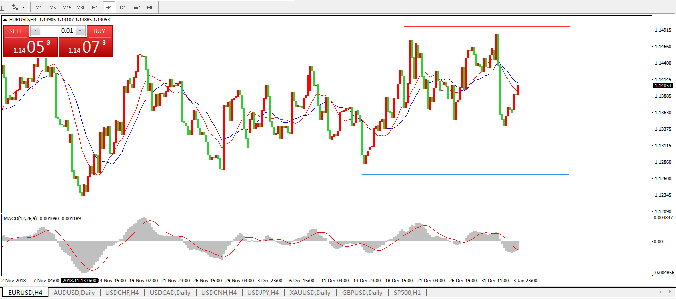 欧元兑美元EURUSD  4小时: