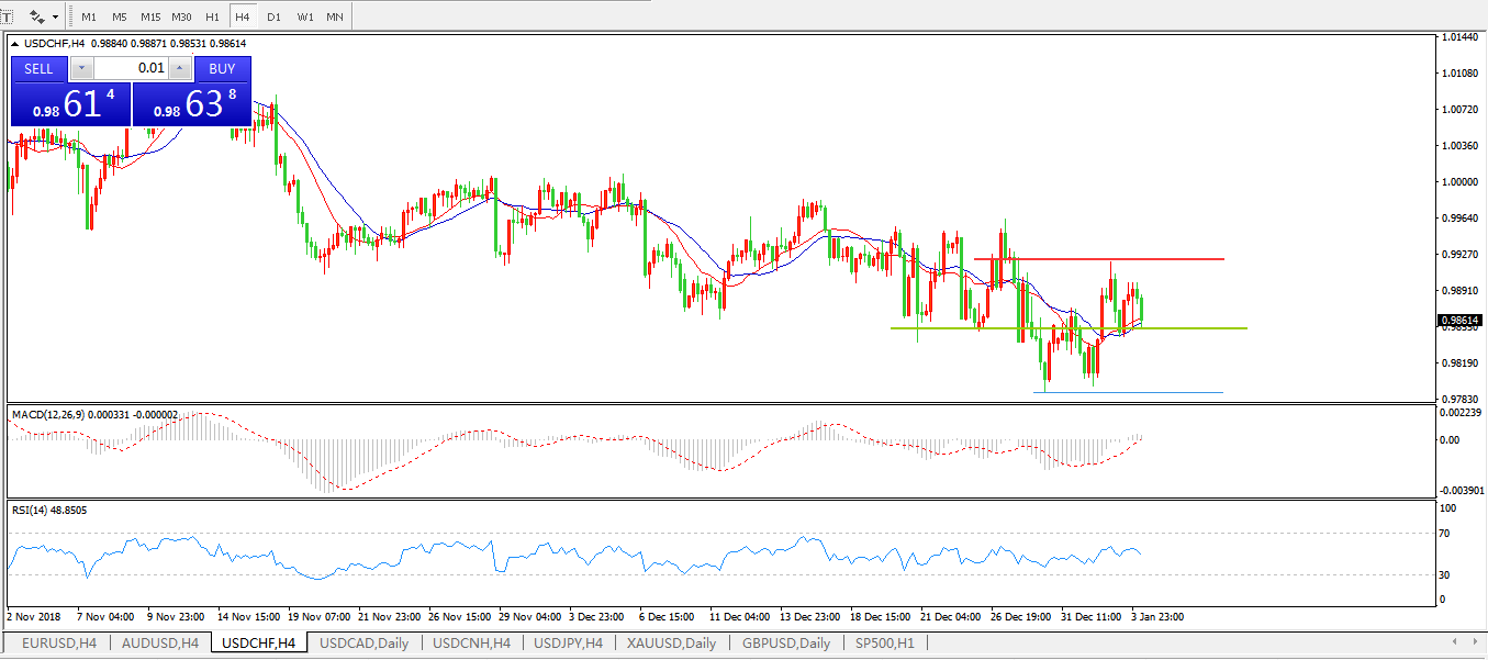 美元兑瑞郎USDCHF4小时图