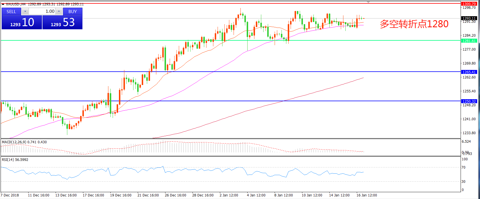 多空转折点:1280.00
