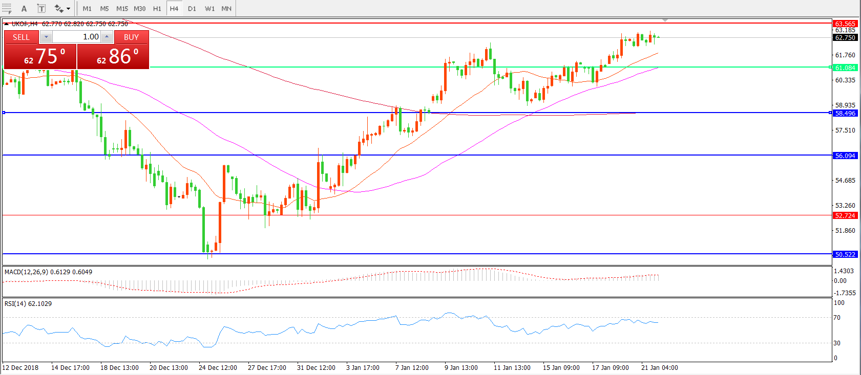 交易策略:在61.00之上看涨,目标63.00 67.00