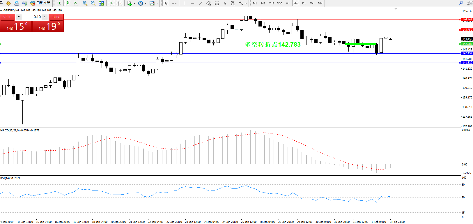 交易策略:142.783上方看涨,目标143.750144.441