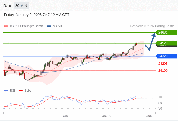 在 24320 之上,看涨,目标价位为 24520 ,然后为 24681 。