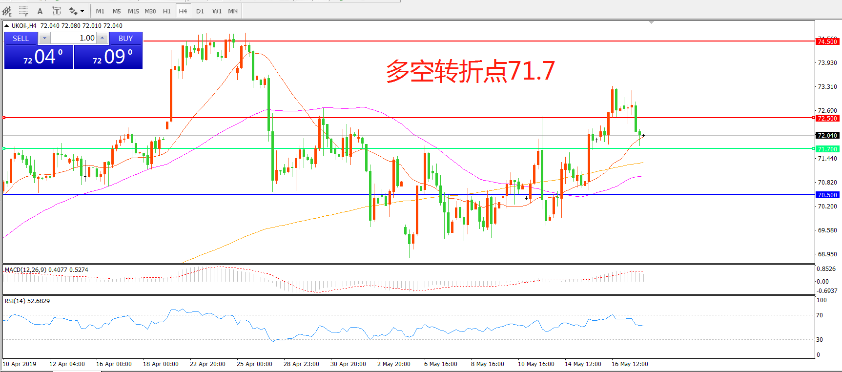 交易策略:在71.70之上看涨,目标72.50    74.50