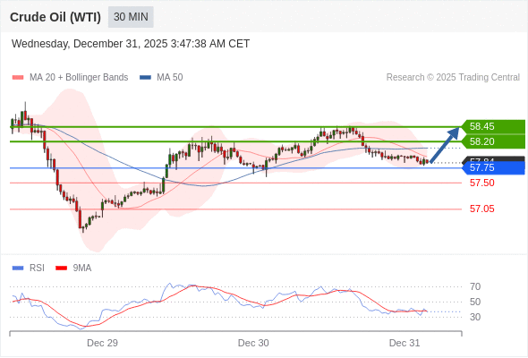 在 57.75 之上,看涨,目标价位为 58.20 ,然后为 58.45 。