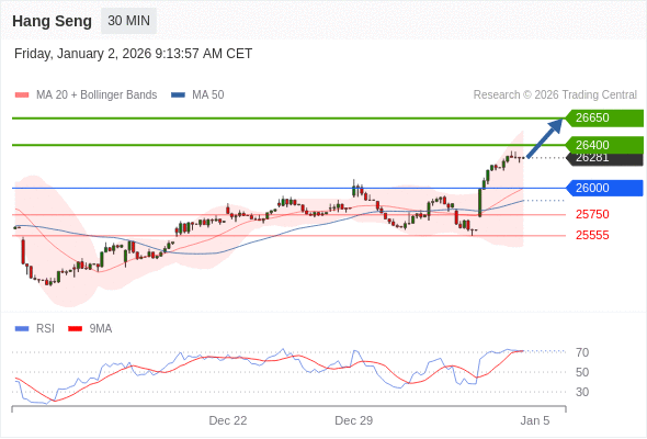 在 26000 之上,看涨,目标价位为 26400 ,然后为 26650 。