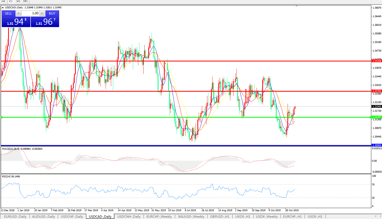 美元兑加元USDCAD 日线图: