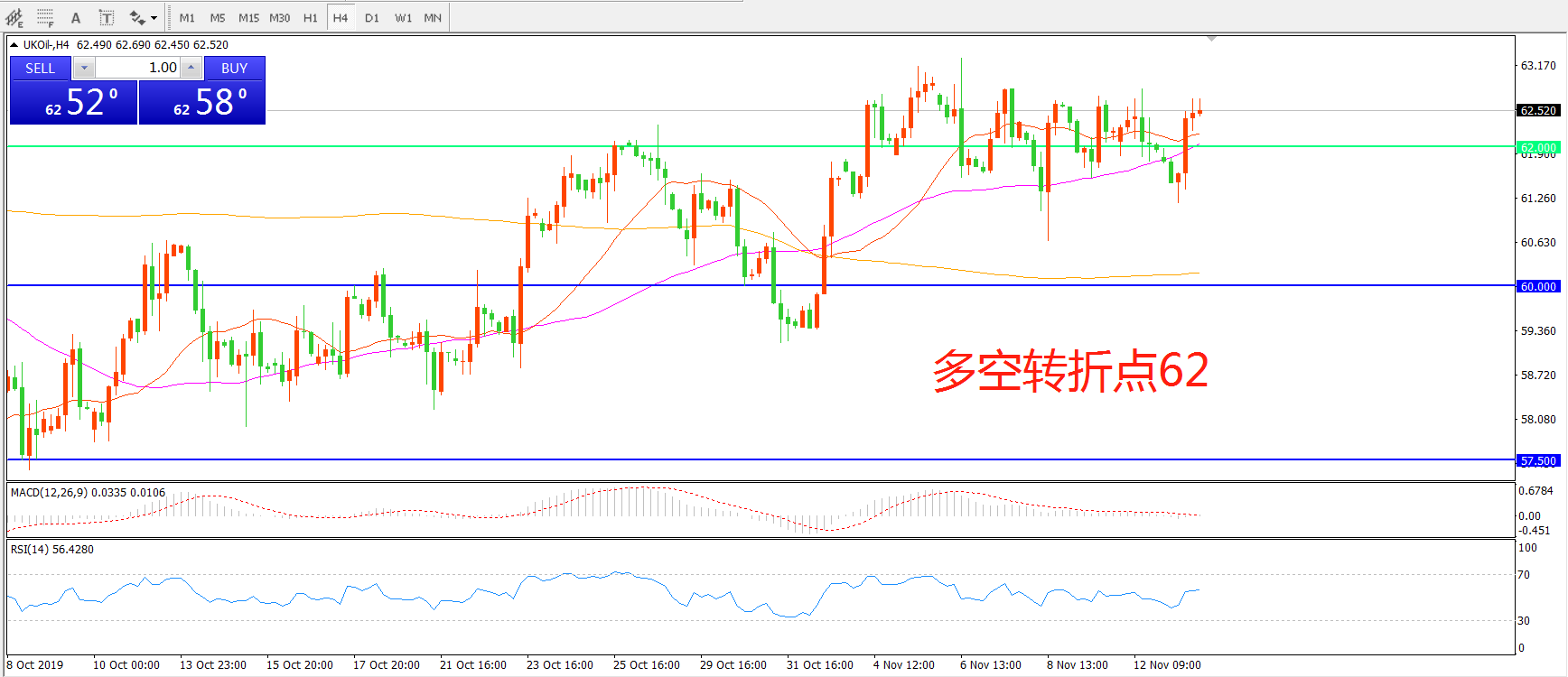 多空转折点:62.00