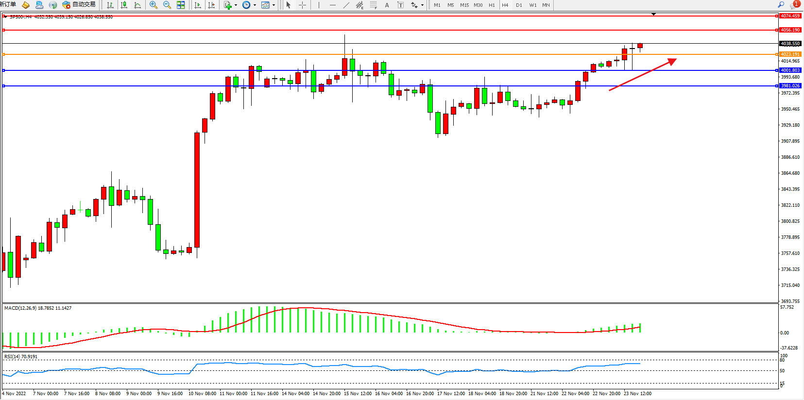 标普SP500——4小时K线图显示: