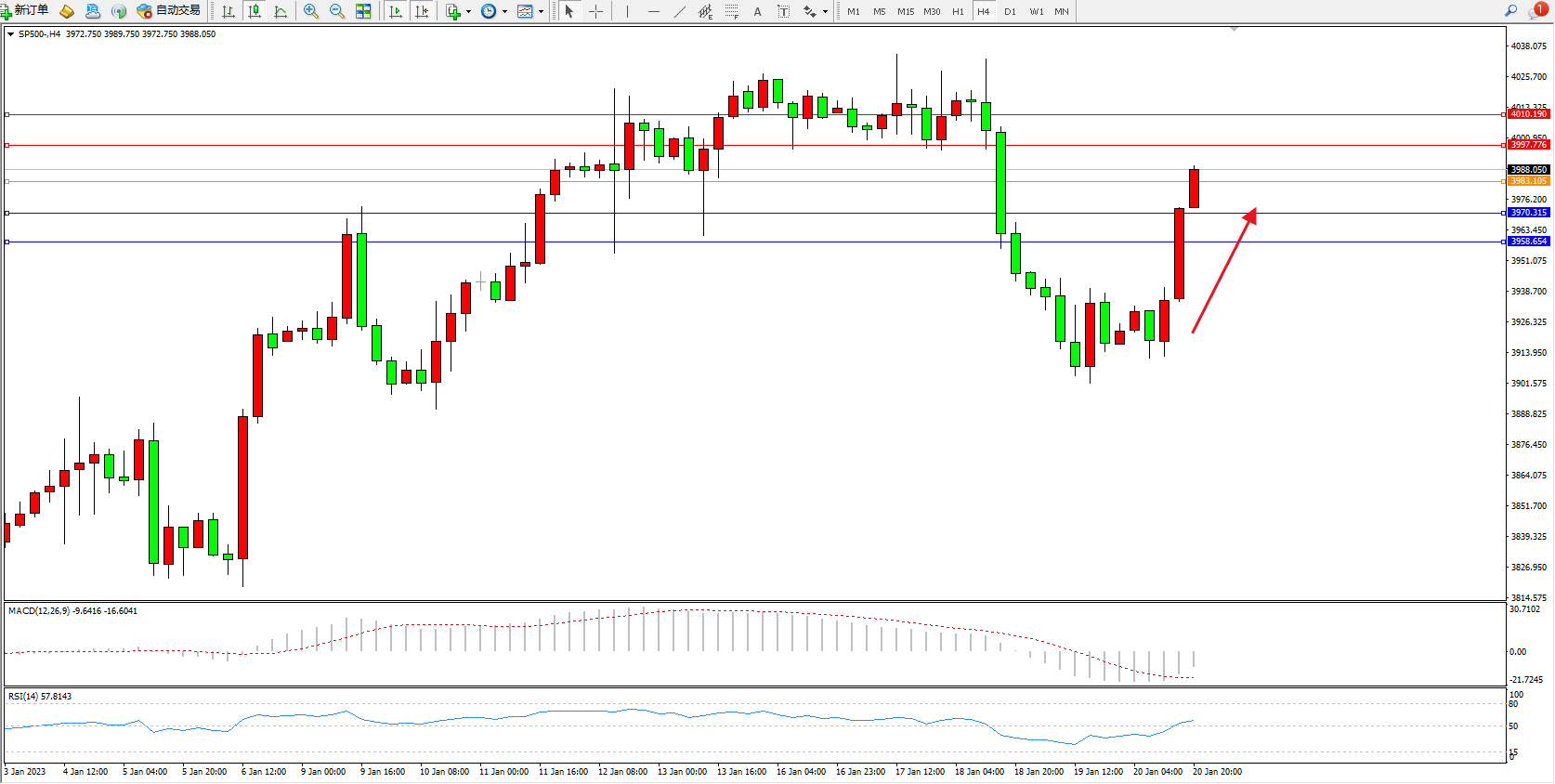 标普SP500——4小时K线图显示: