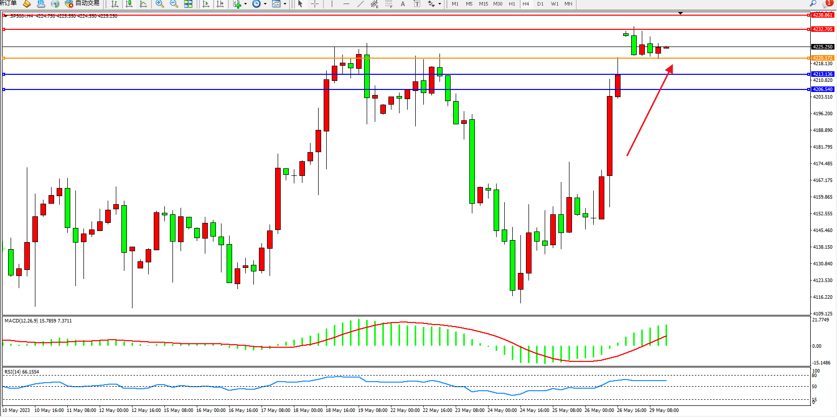 标普SP500——4小时K线图显示: